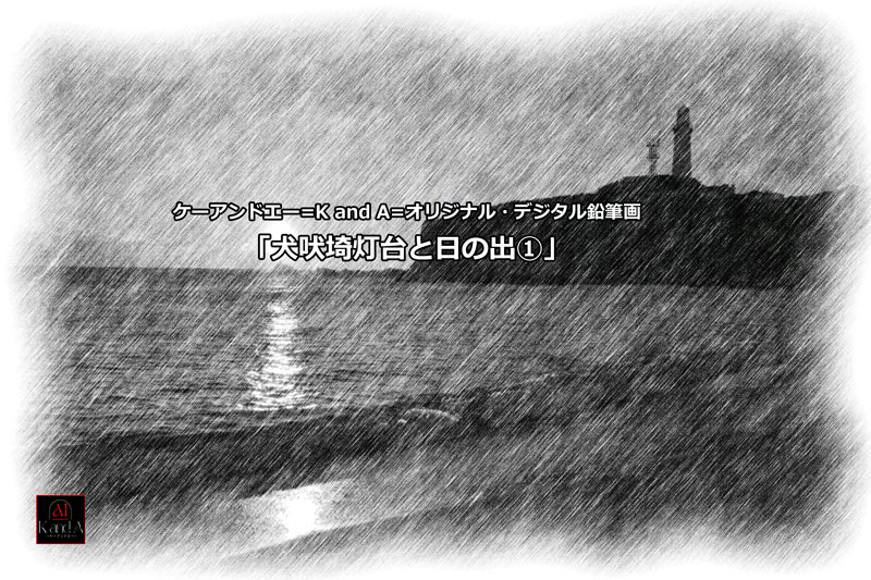 New!鉛筆画風に!=犬吠埼灯台と日の出